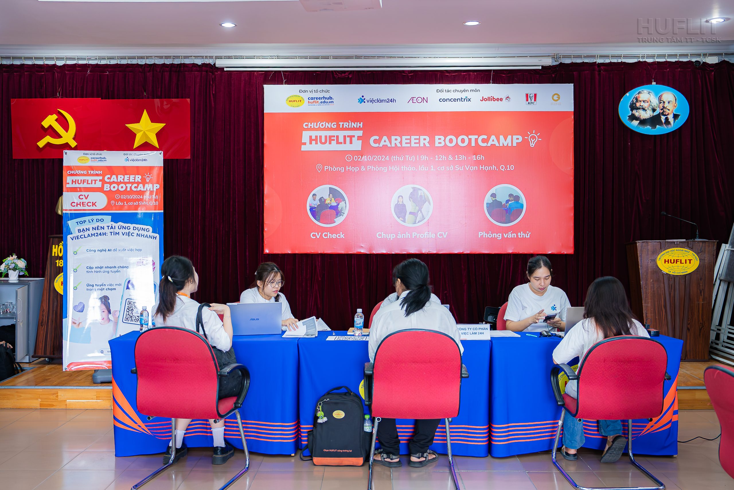 Chương trình HUFLIT Career Bootcamp lần đầu tiên được tổ chức bởi Trung tâm Hỗ trợ sinh viên và Quan hệ Doanh nghiệp (BRASS Center) với sự đồng hành của đối tác chuyên môn Công ty Cổ phần Việc làm 24H và 05 doanh nghiệp đồng hành bao gồm Công ty TNHH Concentrix Service Vietnam, Công ty TNHH AEON Việt Nam, Golden Gate Group, Jollibee Việt Nam, KFC Việt Nam.