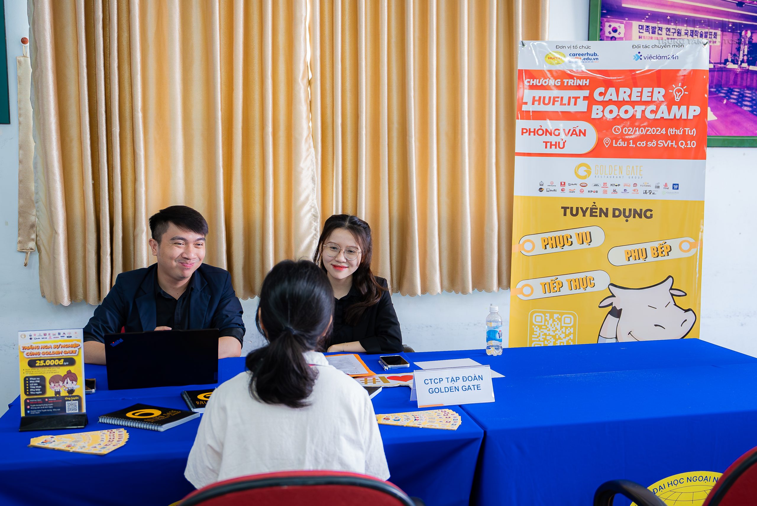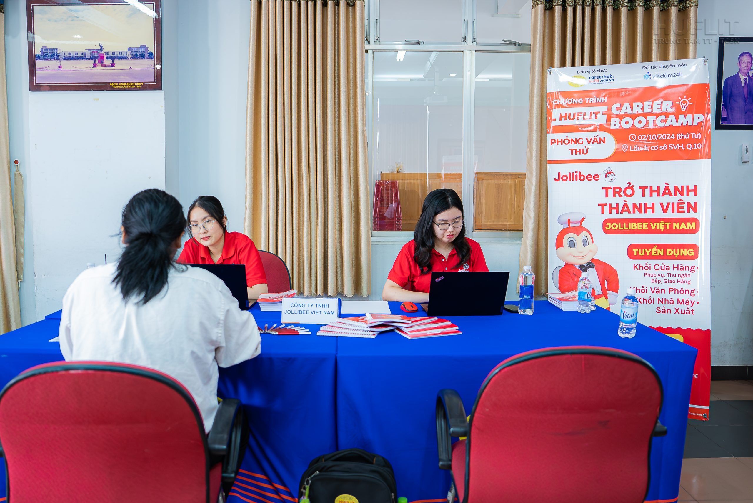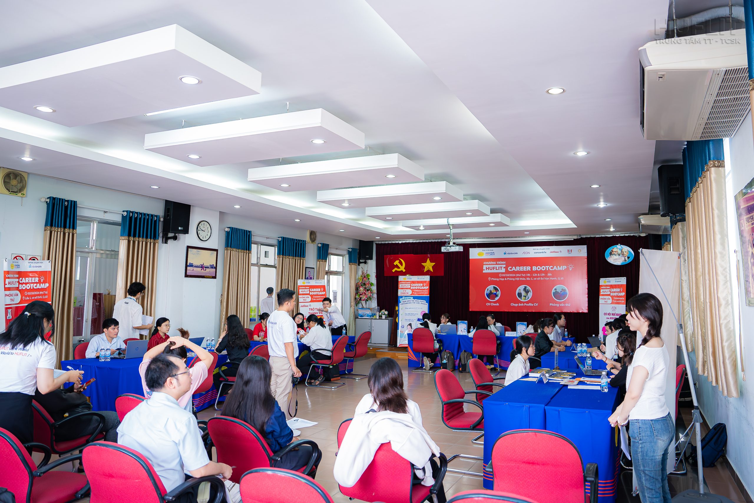Chương trình HUFLIT Career Bootcamp tháng 10/2024 lần đầu tiên đã thu hút gần 100 hồ sơ CV đăng ký tham gia hoạt động Góp ý CV và Phỏng vấn thử và trên 120 sinh viên đăng ký tham dự hoạt động Chụp ảnh Profile CV, đặc biệt chương trình ghi nhận có 12 bạn đậu phỏng vấn thành công sau khi tham gia hoạt động Phỏng vấn thử cùng ngày.